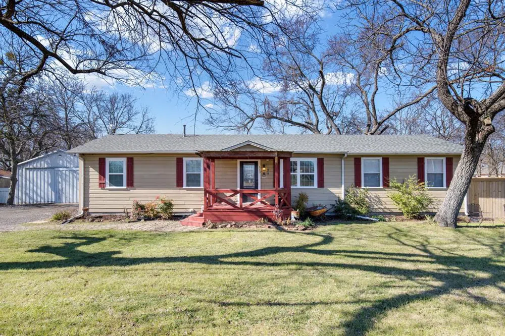 Welcome to this delightful 1500 sf, 3 bedroom, 2 bathroom home perfectly situated on .356-acre lot. Step inside, tol find hardwood floors, an open living room to kitchen with an island and a pantry. The primary bedroom is split from the other two bedrooms offering additional privacy. For added convenience, there is a large utility room with plenty of storage space. Walk through the French doors onto a covered back porch and into a spacious fenced in backyard with mature trees - perfect for relaxing, entertaining, or gardening. Additionally, there is a 24 x 31 metal shop equipped with electricity, perfect for projects, hobbies, or extra storage. The water heater and roof were replaced in 2020.