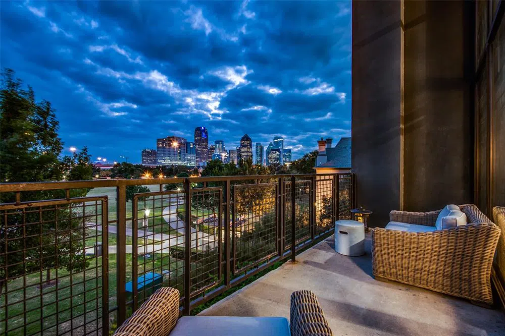 This stylish uptown condo has an iconic downtown Dallas SKYLINE VIEW!! You'll experience the wow factor the moment you open the door. This open floor plan features soaring ceilings, walls of glass with custom Hunter-Douglas shades and opens to a private balcony. This rare 1500sf unit offers the perfect perch from the 3rd floor to be nestled by the trees of Griggs Park overlooking the greenspace, walking trails, and more. This is an ideal location for pet owners! The freshly painted unit is move-in ready with washer-dryer and fridge included, stained concrete floors, granite countertops, custom lighting and includes a full-sized utility room with a half bath and great storage. The upstairs bedroom suite features an open loft concept with plenty of room for a home office. 588 Condominiums is a small boutique gem in the heart of the historic tree-lined State Thomas district. Owners are invited to enjoy a large first-floor patio area with fire pits, gas grills, and beautiful lounging area or head on up to a bougie 9th-floor rooftop Sky Lounge. With a walkability score of 89, you'll become a local in no time, enjoying destinations including Katy Trail, American Airlines Center, Klyde Warren Park, Uptown, West Village and more. And of course, this location has quick and easy access to Love Field and DFW airports!