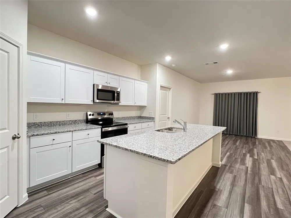 Beautiful brand new home with 4 beds, 2 baths, 2 car garage. Single story with 1827 sq ft. Open and spacious with living room opens to the kitchen and dining is perfect for family gathering or hosting friends. Kitchen features granite countertop, plenty of cabinets, a big island and is fully equipped with all appliances including stainless steel electric range, dishwasher, microwave & refrigerator. Other added features include ceiling fans, 2' faux wood blinds, sliding patio doors with drapes, full size washer & dryer... The huge backyard and patio will be a great retreat for outdoor activities. Don't miss! Pack and move in today! Tenant and agent to verify information listed including, but not limited to measurements, schools, and HOA info.